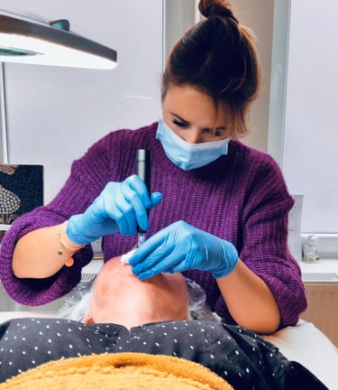 Utilisation de la Wellbox® et d'appareils à courant galvanique suivie de massages avec produits adaptés à votre condition.